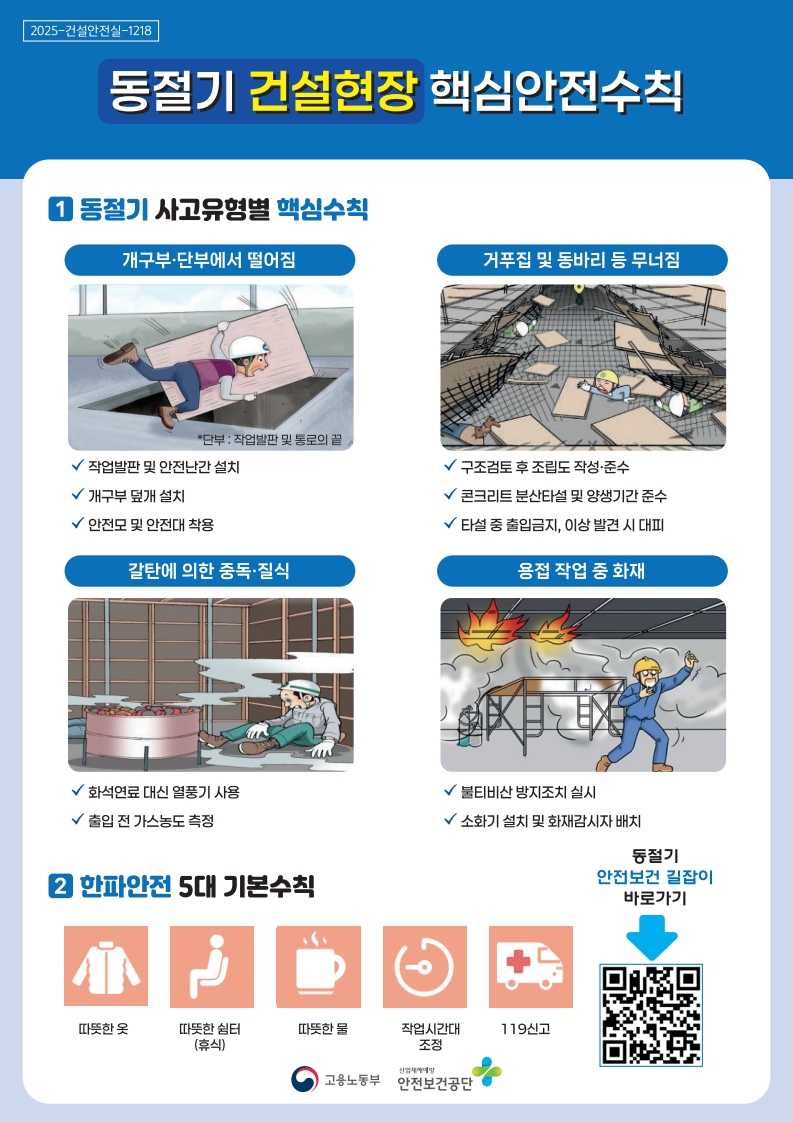 [안전보건공단] 동절기 건설현장 안전보건길잡이 및 안전수칙