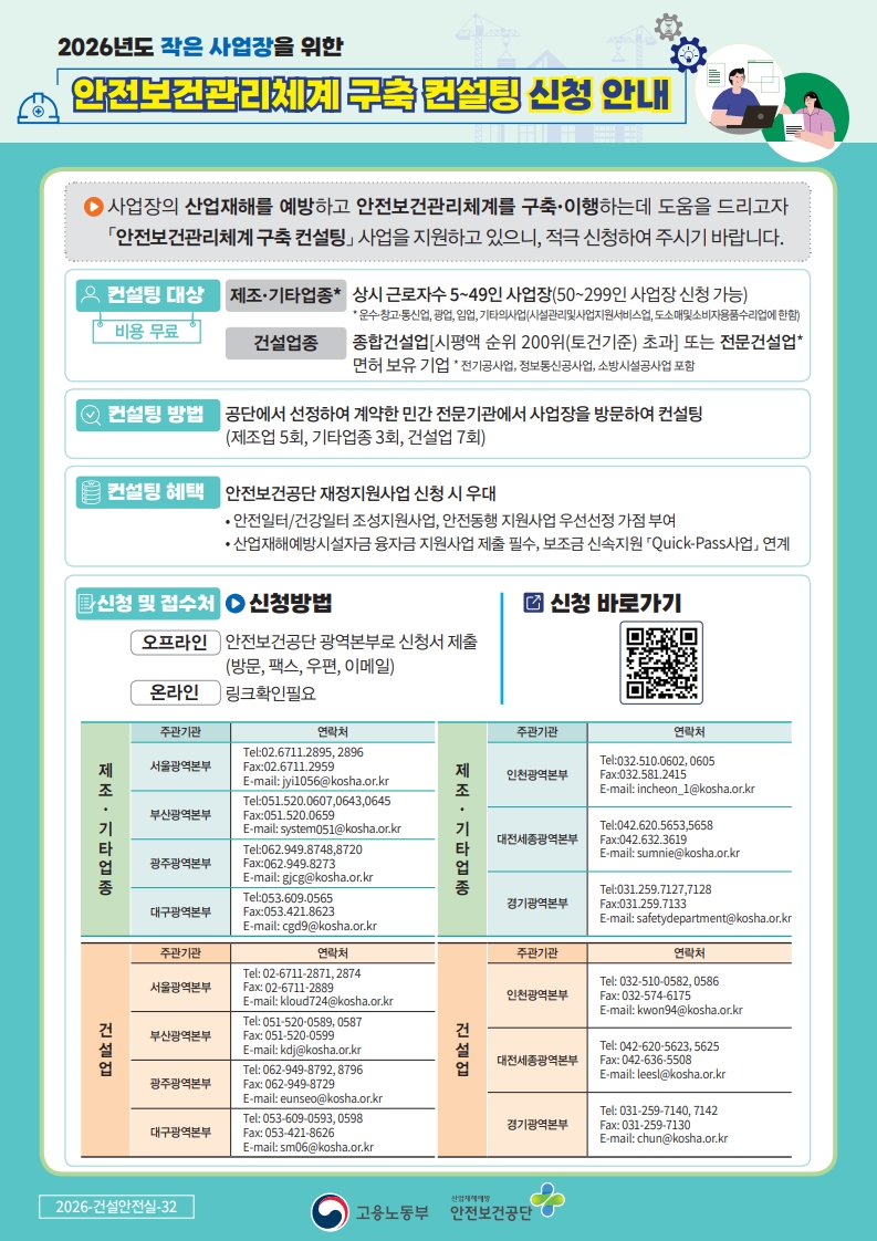 [안전보건공단] 2026년 안전보건관리체계 구축 컨설팅 신청 안내